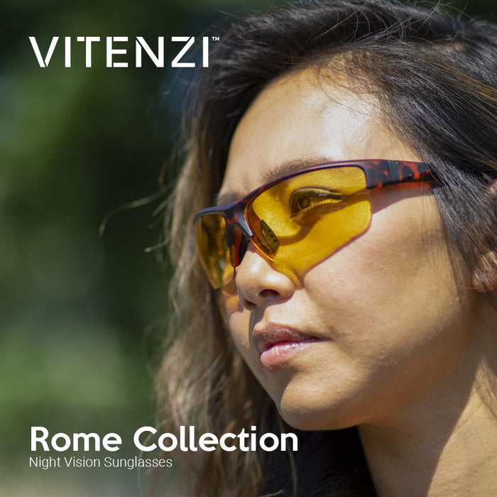 The Rome Night Vision Sports Wrap Around Driving Sunglasses are constructed for comfort and durability with modern designs inspired by Italian eye-wear. Featuring a lightweight yet strong frame, these comfortable yet premium glasses will hold up to the rigors of frequent use. The lenses are impact-resistant, shatter-proof and provide 100% UVA and UVB protection.