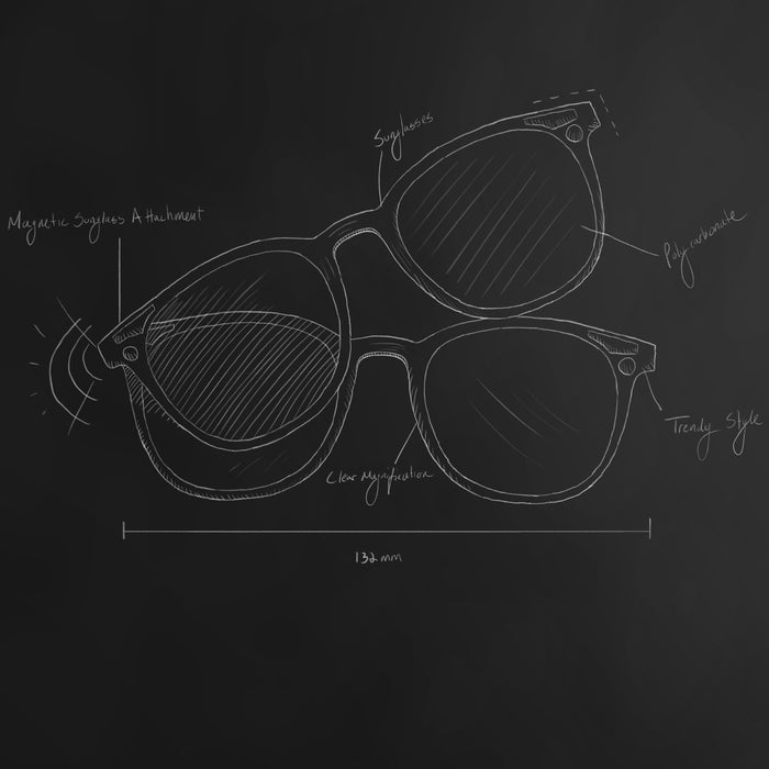 These chic glasses have a classic design with polycarbonate frames. There is a stylized arch on the bridge of the nose. The magnetic clip sunglasses can be placed seamlessly on the glasses to enhance your look.
